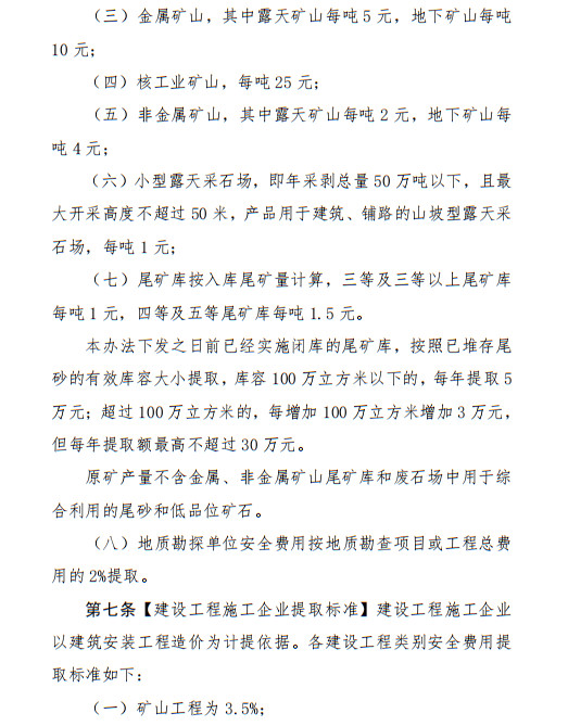 房屋建筑工程提取標準由2.0%提高到2.5%。