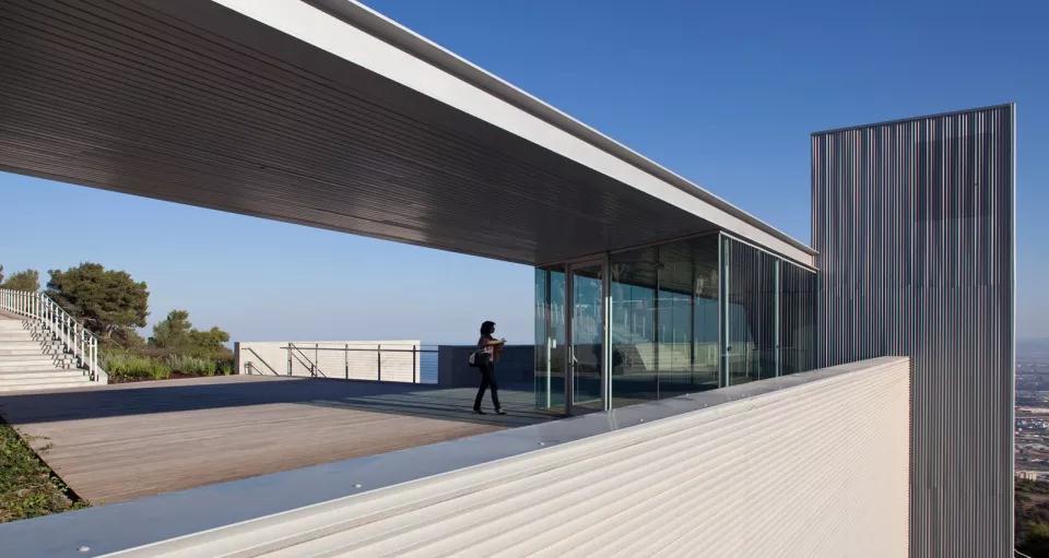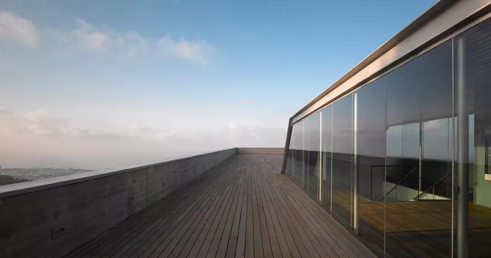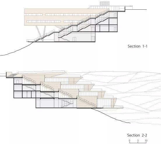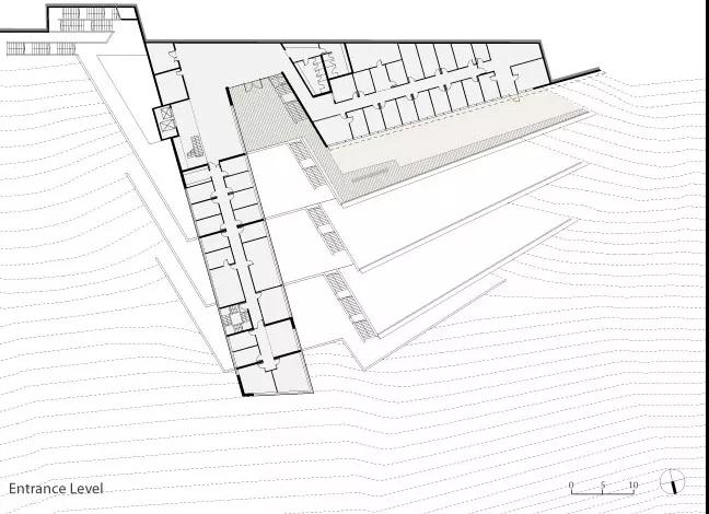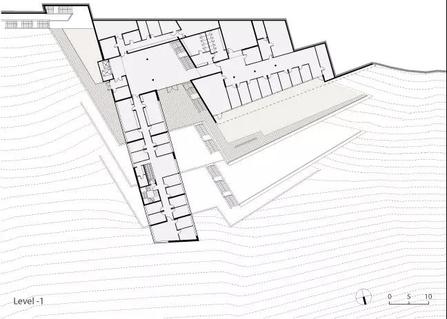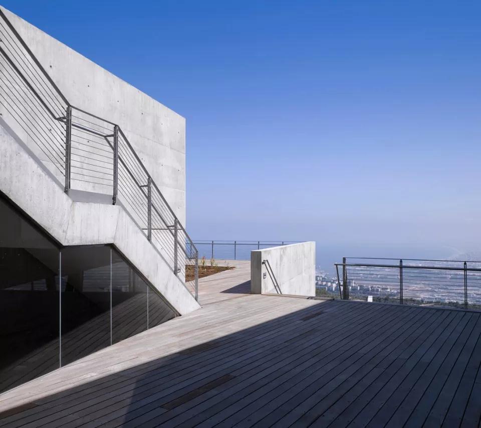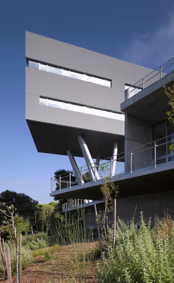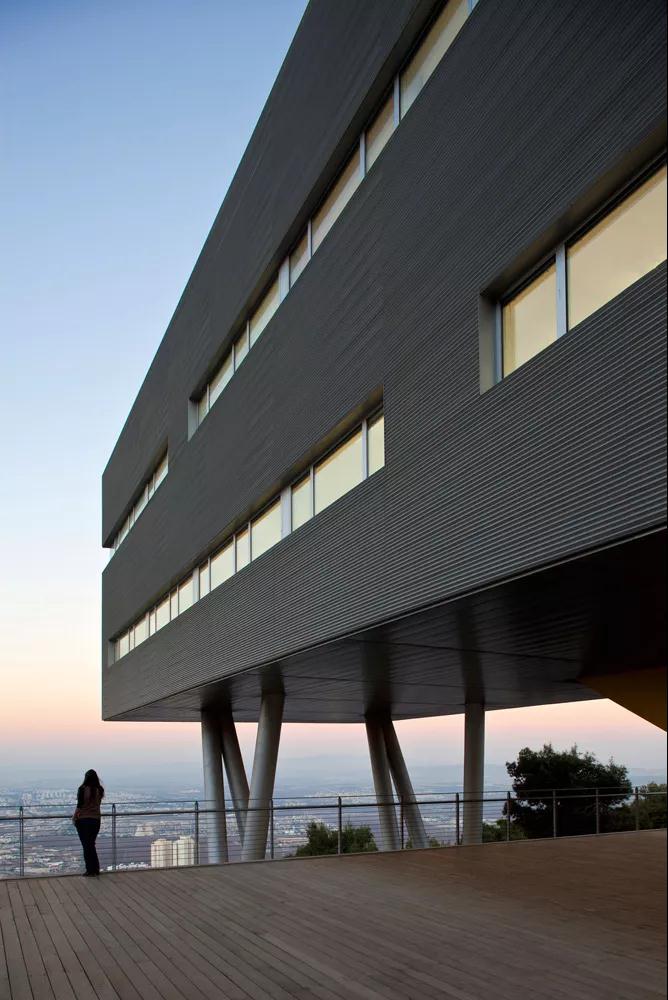 以色列海法大學(xué)學(xué)生中心設計最大的特點(diǎn)是出挑的體塊和層層退臺的建筑關(guān)系。項目簡(jiǎn)潔而優(yōu)雅,無(wú)論是伸入山谷的姿勢還是隨著(zhù)山勢后退的露臺,都是對自然環(huán)境的一種回應,運用得恰到好處。你可以選擇在室內感受到自然的環(huán)繞,同樣可以在各個(gè)樓層走出房間,欣賞到美景。