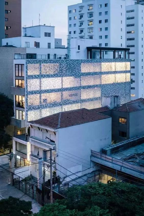 夜景效果的應用由于主要光源的不同可分為內透光和外照明兩種方式。內透光的夜景效果依據相同原理,進(jìn)入夜晚后,室內空間亮度高于室外空間,表皮與室內、外的圖底關(guān)系與白天時(shí)互換,光線(xiàn)透過(guò)穿孔鋁板表皮感染室外。