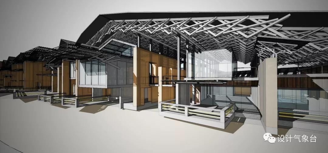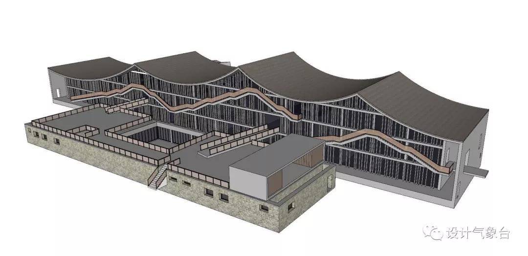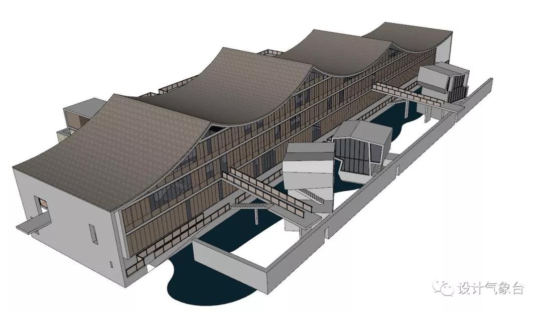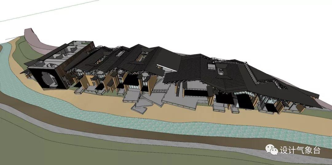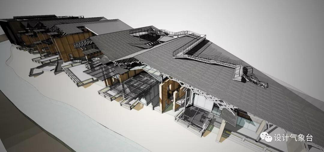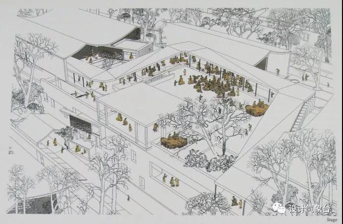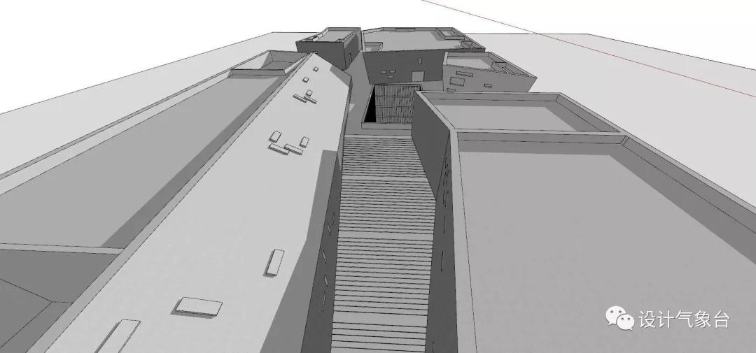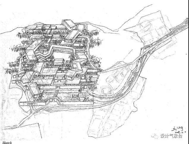 從穿透性視線(xiàn)的原則說(shuō),可以把這個(gè)瓦屋頂想象為無(wú)限寬闊,它至少覆蓋著(zhù)一個(gè)廣大城市的尺度,只是因為此地一山一河的限制被臨時(shí)切斷。