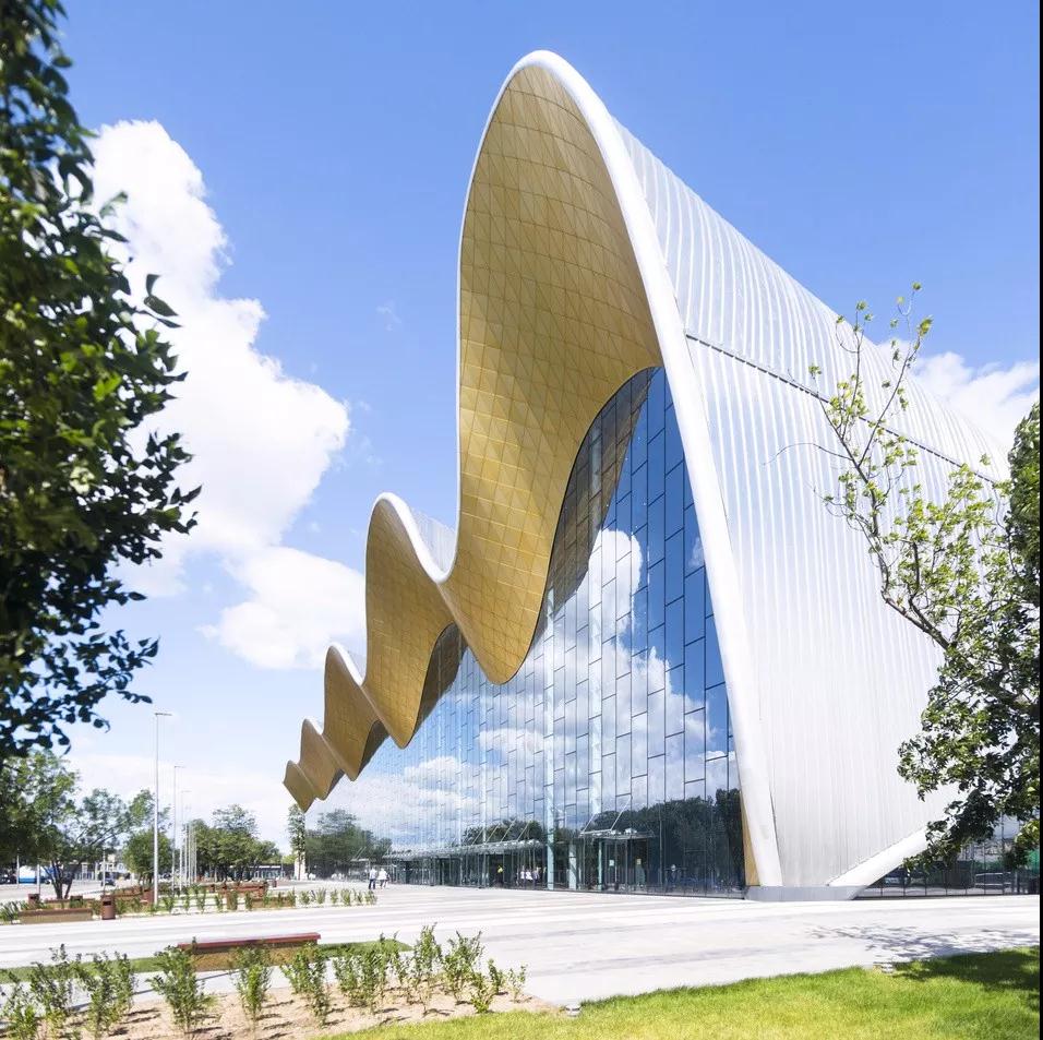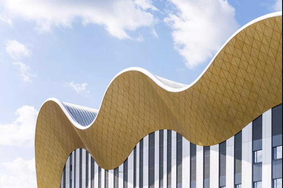 建筑物的屋頂形態(tài)類(lèi)似于飄動(dòng)的體操成彩帶,使得體育場(chǎng)館具備明顯的可識別性和標志性 。波浪從東邊的垂直墻開(kāi)始并形成波峰,波浪的形狀西側逐漸趨于平緩。