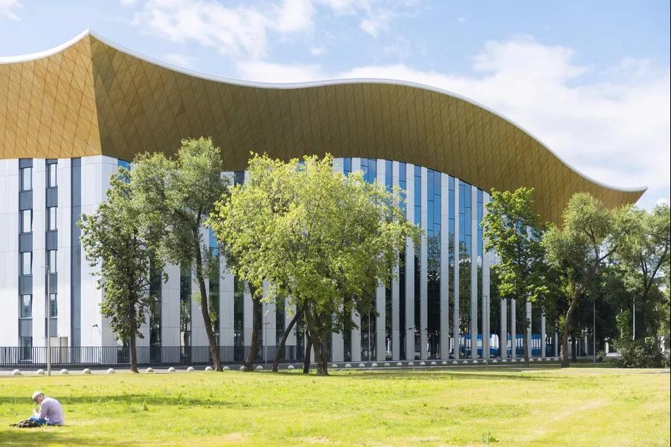 近日,位于莫斯科的Irina Viner-Usmanova藝術(shù)體操中心項目建成并投入使用。該藝術(shù)體操中心位于盧日尼基體育場(chǎng)的東北部,包括競技場(chǎng),訓練館,醫療中心,運動(dòng)員酒店,行政辦公室,桑拿房等。所有這些功能都覆蓋在一個(gè)獨特的屋頂下,合理緊湊的組織在這個(gè)簡(jiǎn)單的體量之中。