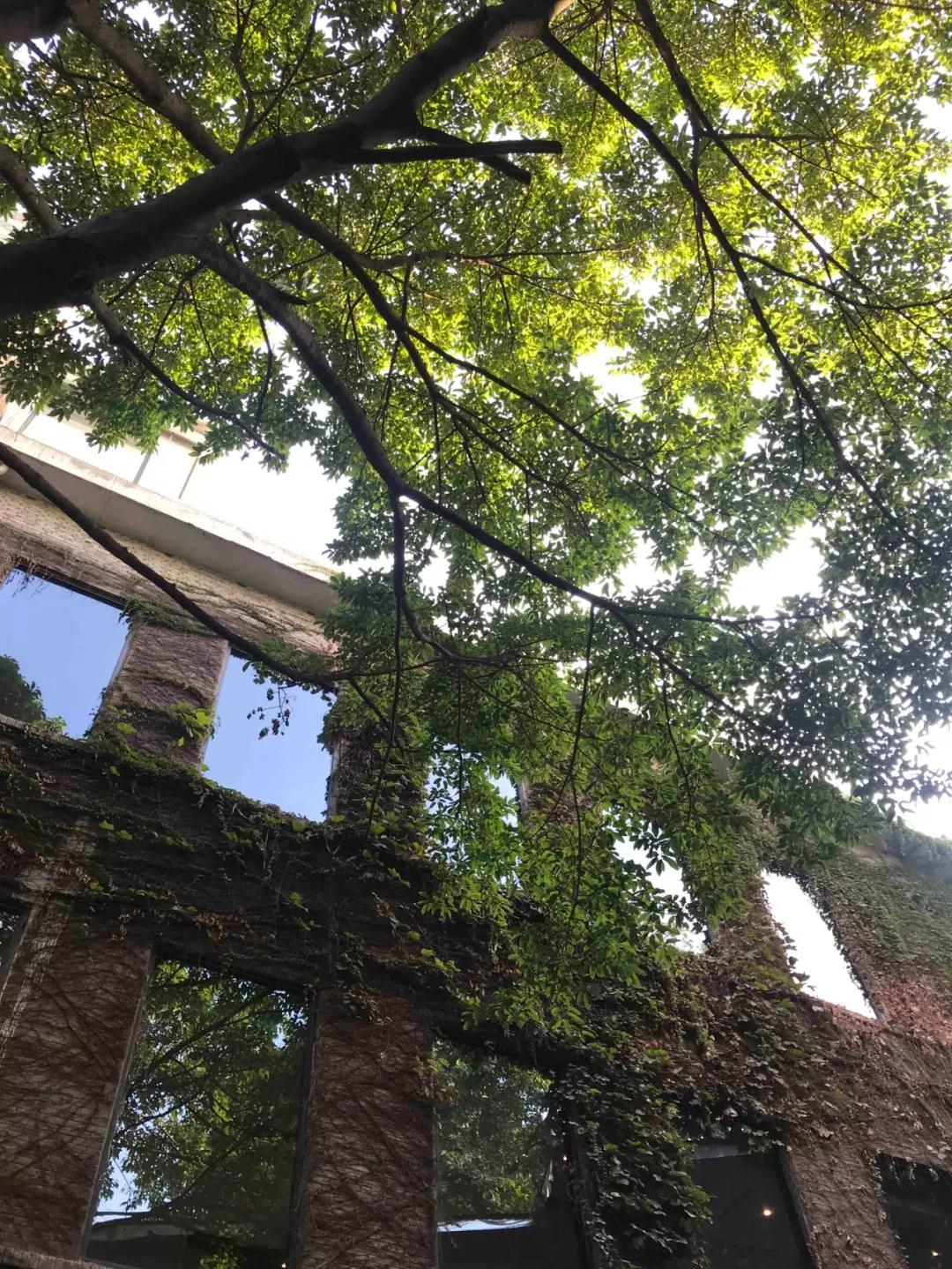 北側的后院是一個(gè)渾然天成的詩(shī)意空間,老墻上的爬山虎還有那一磚一瓦都是歷史的記憶,尤其是萬(wàn)縷陽(yáng)光穿過(guò)茂密枝葉灑下的