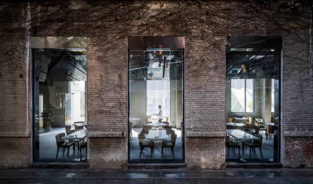 廠(chǎng)房青磚立面有較好的歷史與美學(xué)價(jià)值,在保護性修復之余,仍然作為建筑立面使用,尋常認為這不僅僅是一種歲月的儀式感,