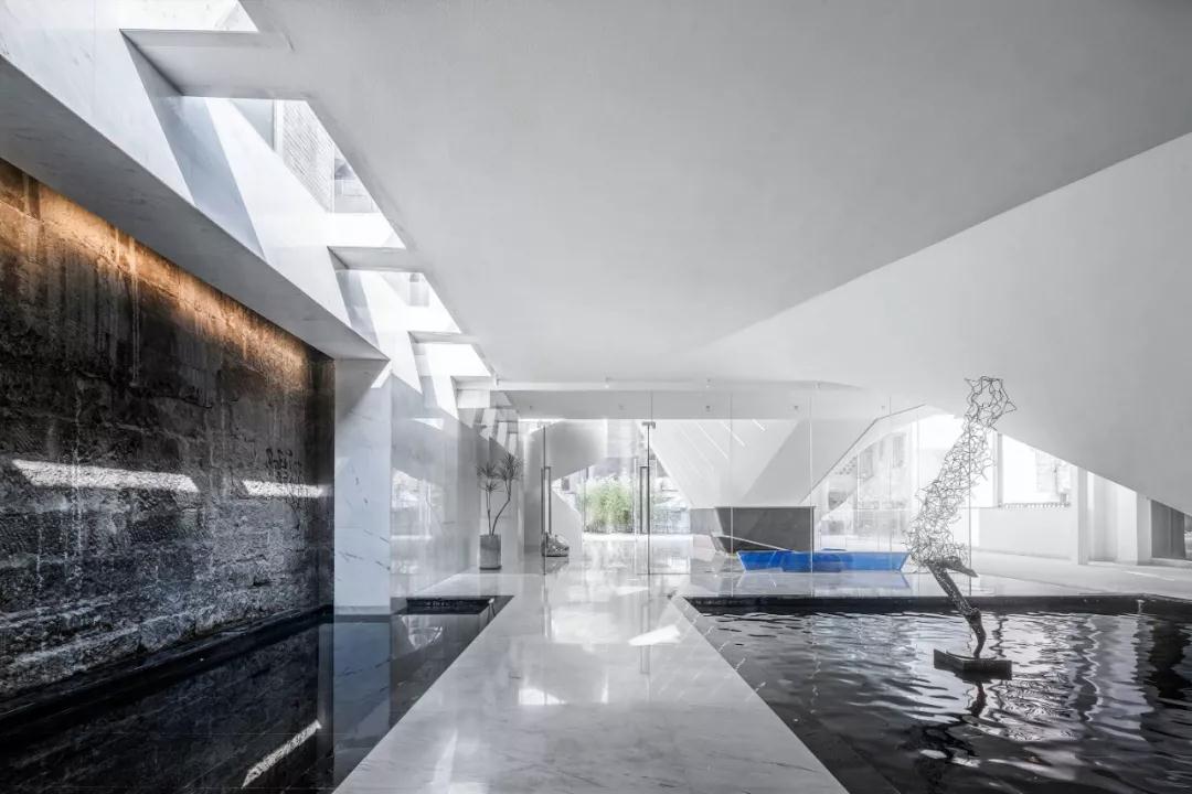 設計團隊將酒店定義為一個(gè)微型的山水城市,同時(shí)也充滿(mǎn)了棲居的藝術(shù)。在這里可以閑散的游走于大堂和水院之間,置身藝術(shù)禮
