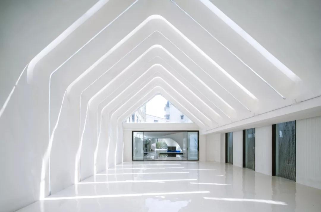 愉悅。例如中庭水院的采光天井和禮堂的屋頂天窗不僅補充了照明,細長(cháng)而有序的幾何形態(tài)還勾勒出抽象的光影矩陣,引領(lǐng)心靈