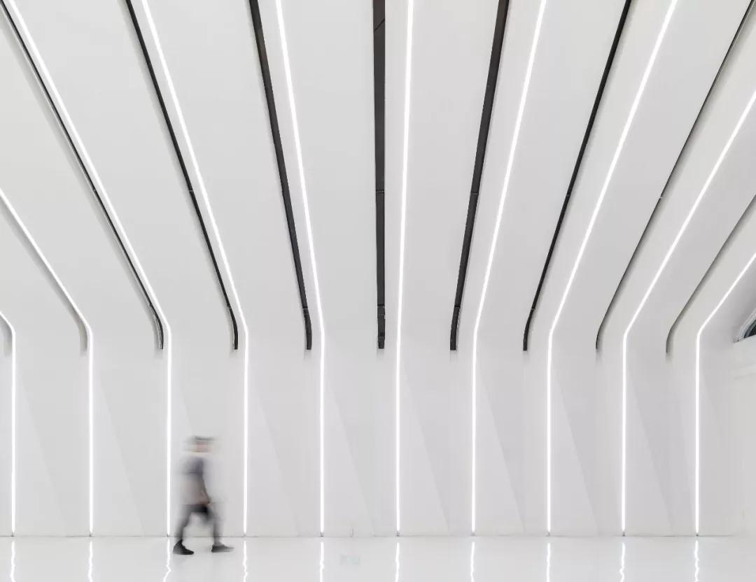 薄殼結構與金屬幕墻構成的“裙擺”創(chuàng )造出一層集合酒店接待、休憩與多功能廳的開(kāi)放服務(wù)空間,漂浮為頂,下落為幕,抬升為