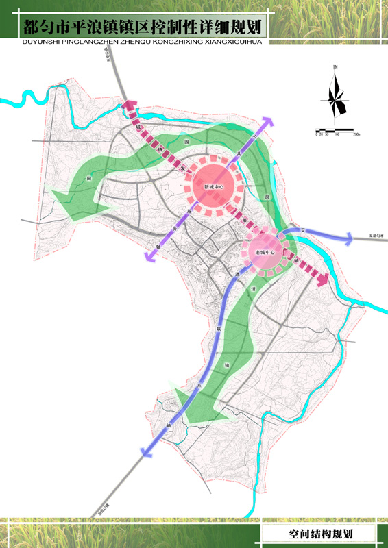 2、空間結構:“兩心·四軸”。兩心:即老城中心、新城中心。四軸:即城鎮發(fā)展軸、交通聯(lián)系軸、公共服務(wù)軸、田園風(fēng)情軸。