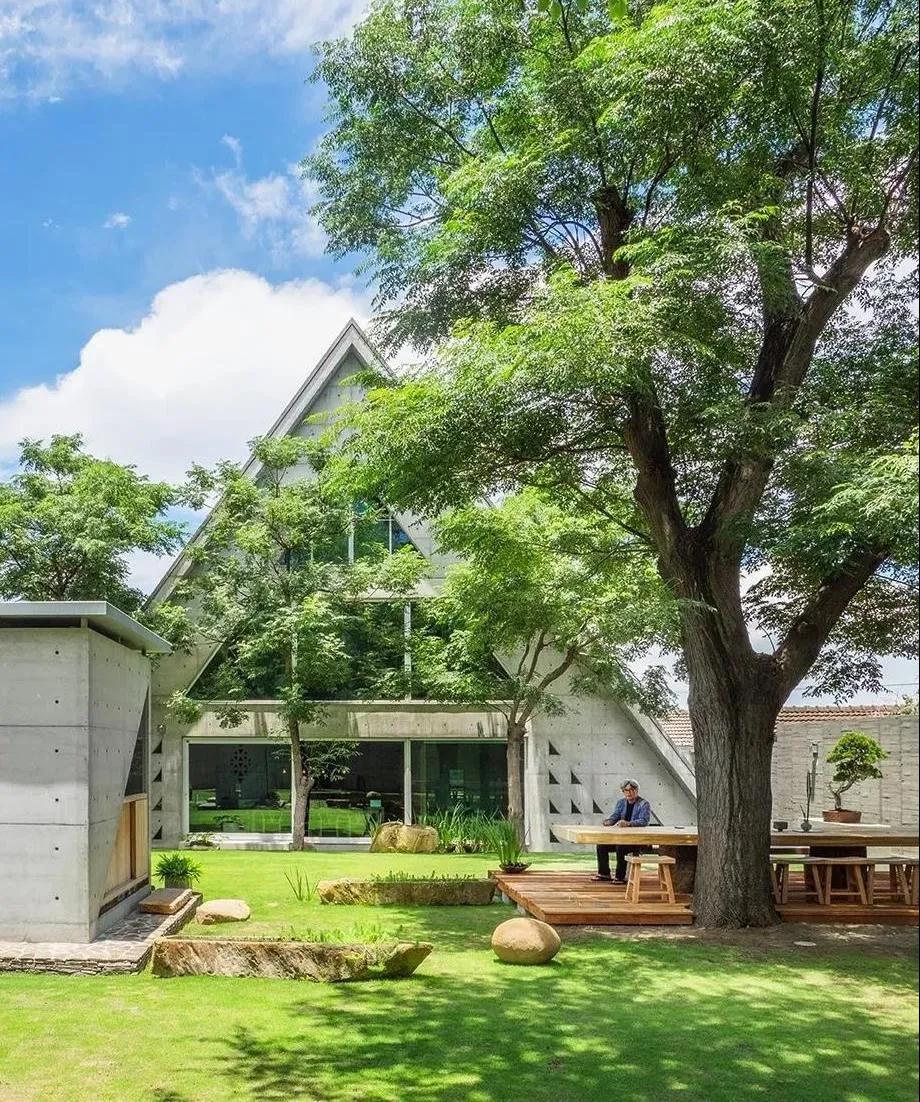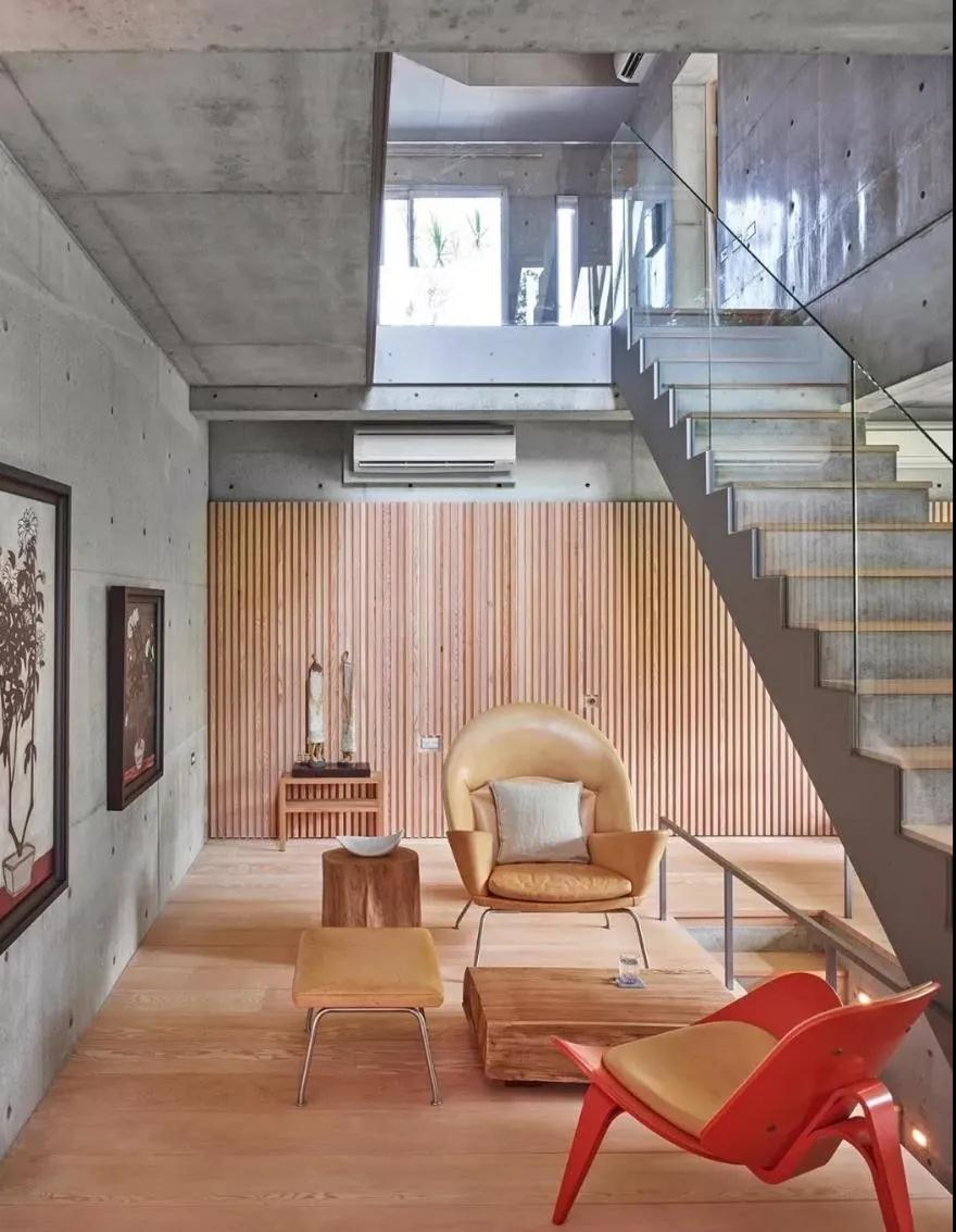 南臺灣的古都帶著(zhù)老紳士的氣味,漁光半島上立著(zhù)一幢三角形建筑“毛舍”,在傳統紅磚民宅群里,它顯得冷靜、獨特,充滿(mǎn)思考也熱情飽滿(mǎn)。設計師設計手法擅以水泥材料在灰階間游移,使單一材料具有多向美學(xué)面貌。作品個(gè)性圓熟,色調及細節溫潤,與安藤忠雄近乎出世的氣質(zhì)有所不同。
