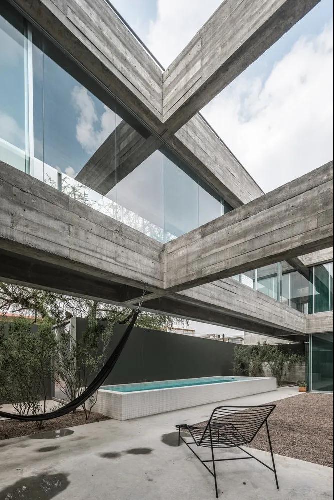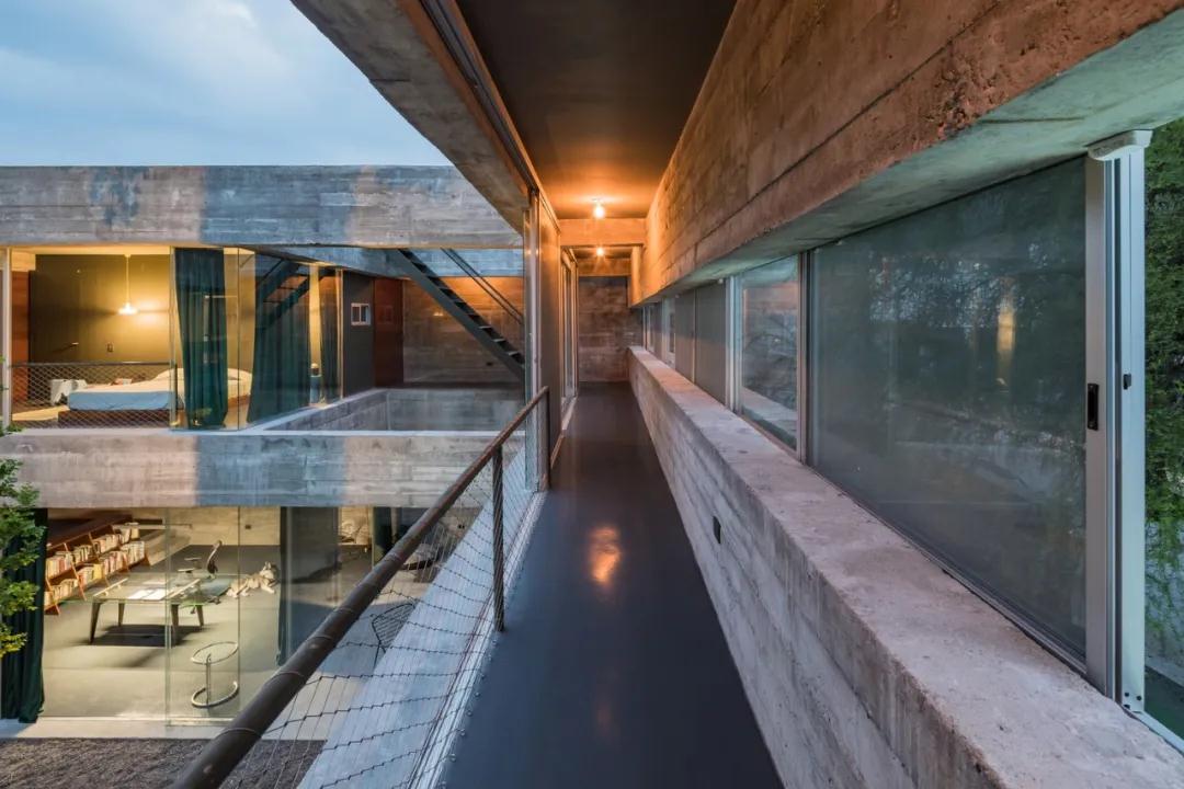 該項目位于墨西哥北部的蒙特雷城市。混凝土所持有的最為原始的狀態(tài)帶來(lái)了粗糙感和可感知的重力感,讓這感到房屋永遠處于一種施工狀態(tài)下,并同時(shí)預示著(zhù)房屋隨時(shí)能變回石頭一樣的狀態(tài)。