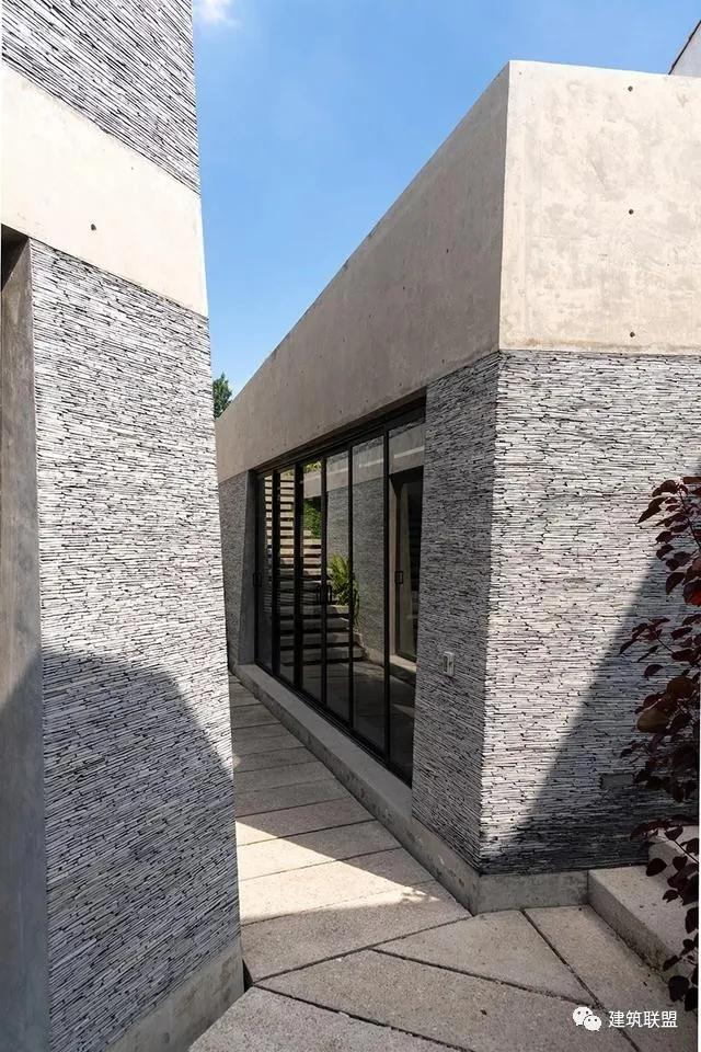 Rojkind建筑事務(wù)所新完成的Amanali住宅表達了一種莊重的設計語(yǔ)言,該工作室正是因該設計語(yǔ)言而為人所知。與該工作室設計的位于墨西哥海岸,于2018年建造的Foro Boca音樂(lè )廳相似,Tepeji Del Rio的住宅呈現出一簇相互對話(huà)的堅固的多面幾何集群。每個(gè)體量之間都通過(guò)巨大玻璃縫隙建立視覺(jué)聯(lián)系,可伸縮的框架向被周?chē)G色景觀(guān)包圍的私人露臺打開(kāi)。被暗色石材覆蓋的具有表述行為的墻體在白天作為集熱器收集太陽(yáng)熱量,而到了夜晚,則釋放熱量,室內氣溫通過(guò)自然交叉通風(fēng)調節。景觀(guān)元素是本土化的,所有的材料也是本土化的。