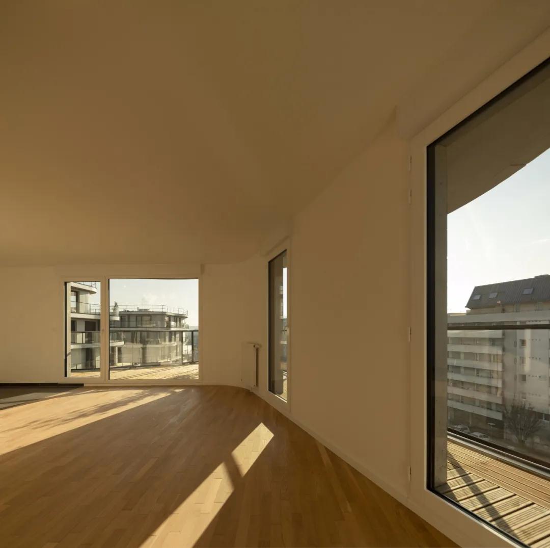 每間公寓的外部空間平均為22平方米。盡管它位于巴黎郊區的第二環(huán),但它有益于形成高質(zhì)量的內部空間,尤其是建筑中所有房間以及公共區域都選擇了實(shí)心橡木拼花地板。該建筑的南側邊緣被視為可以俯瞰外部的船頭。公寓設有寬敞的落地窗和朝南的寬闊露臺,可對LaDefense區一覽無(wú)余。