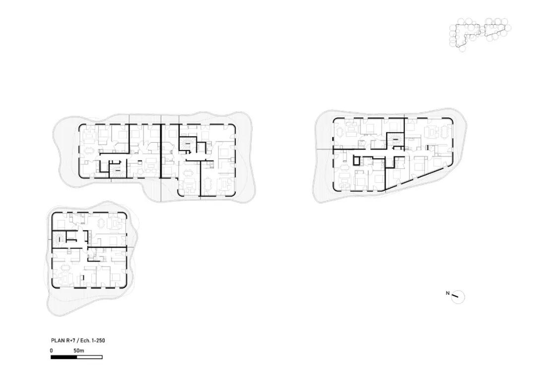 該項目的圍護結構和平面圖的是根據樓層的遞進(jìn)而錯落變化,因此可以為周?chē)h(huán)境提供豐富的空間。
