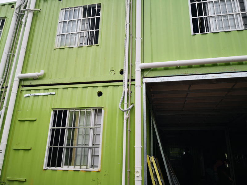 2)考慮到裝配式集裝箱建筑的特點(diǎn),針對集裝箱建筑防不勝防的漏風(fēng)狀況(箱體與箱體之間,管道穿墻、穿樓板較多等),及由此帶來(lái)的病房負壓調節控制困難的問(wèn)題,采用適度增大房間通風(fēng)換氣次數、通風(fēng)系統風(fēng)機風(fēng)量風(fēng)壓增大保險系數的措施,以達成相鄰區域不下小于5帕的要求。