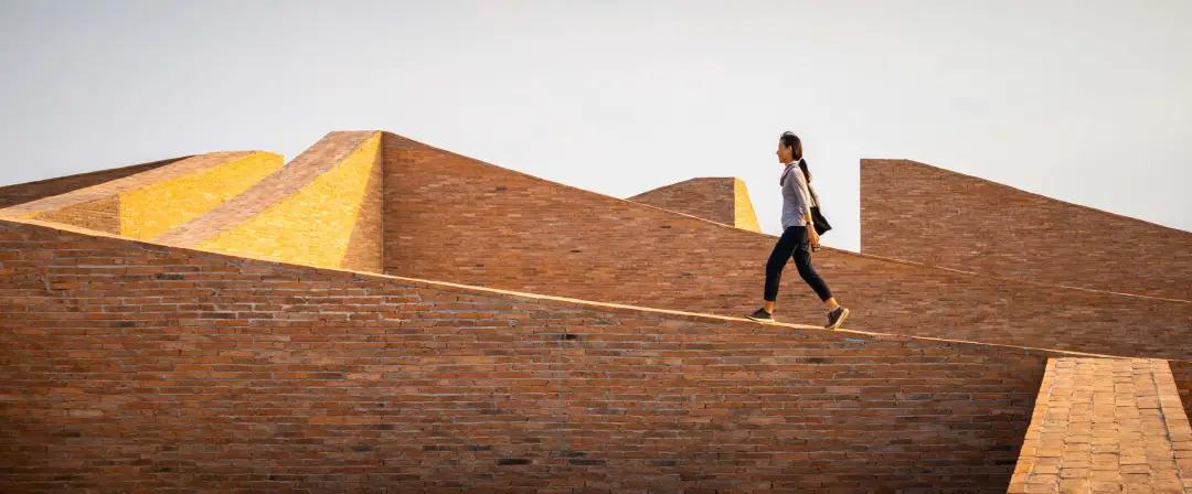 ▽從地面“冒出”的弧形墻體引導人們走進(jìn)博物館內