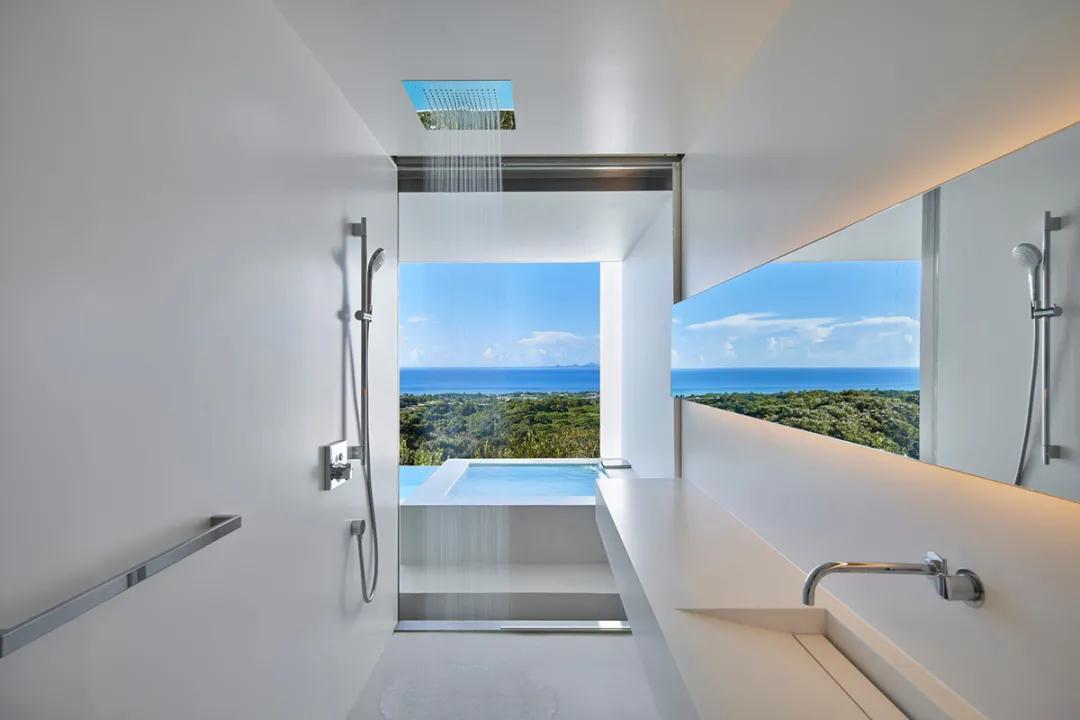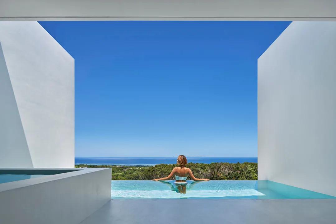 該建筑是一家五室簡(jiǎn)約豪華酒店,位于海拔160m處,可俯瞰沖繩的自然風(fēng)光。