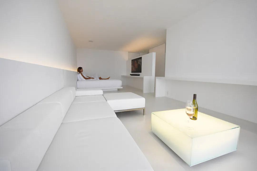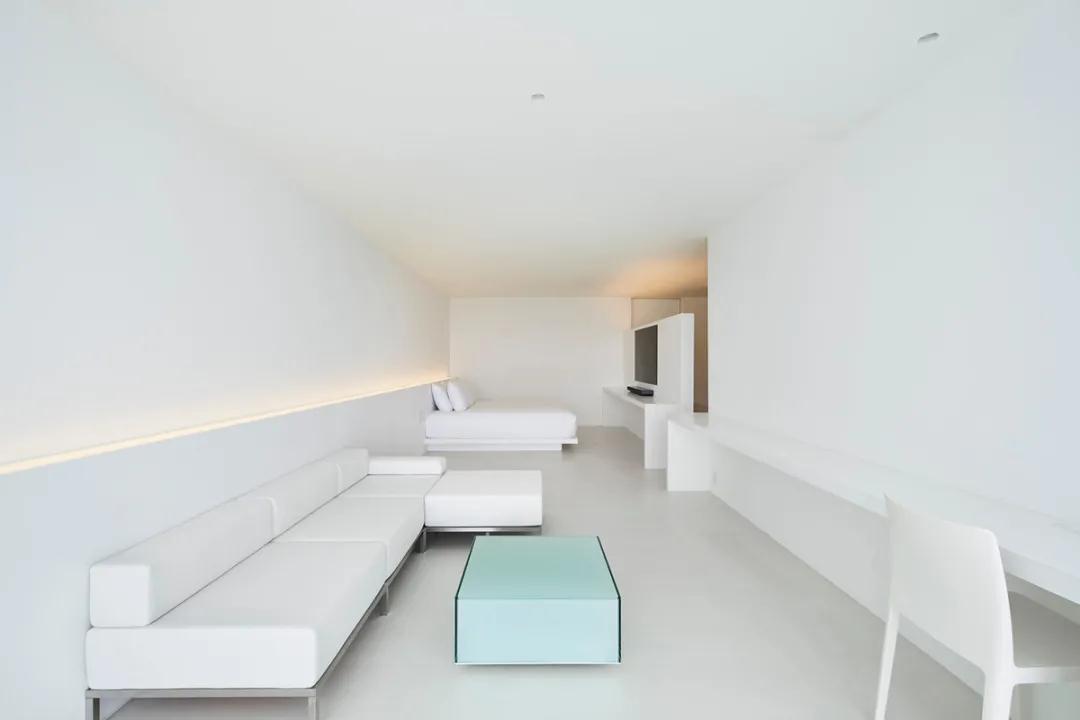 小川晉一設計了全白色的極簡(jiǎn)主義風(fēng)格,將日本建筑中的五間豪華客房隱藏起來(lái)。