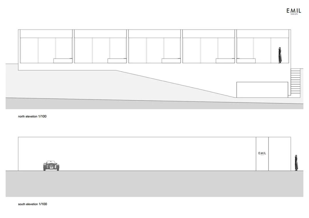 另一方面,酒店的南方呈現出巨大的立面,沒(méi)有任何開(kāi)口。通向客房的人行道是一個(gè)僅允許光線(xiàn)從庭院進(jìn)入的空間,旨在形成與客房形成鮮明對比的空間。