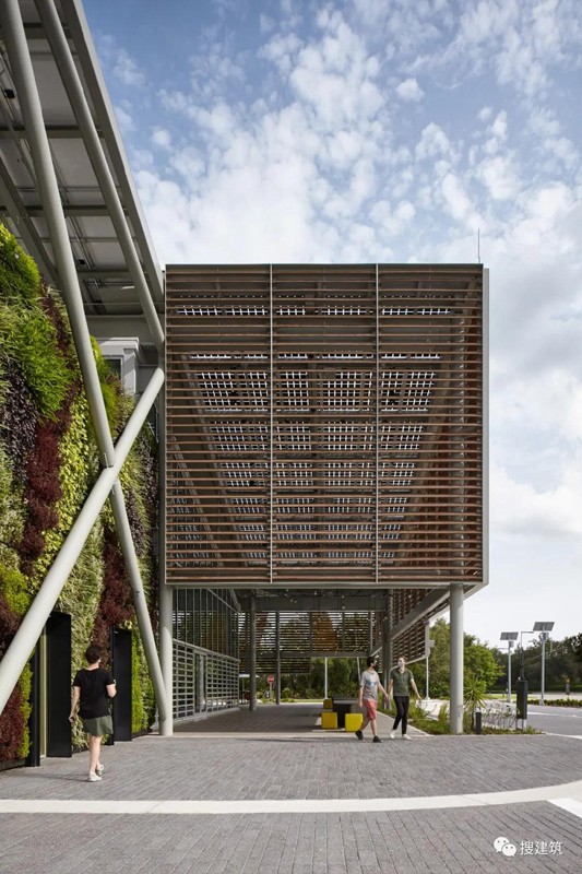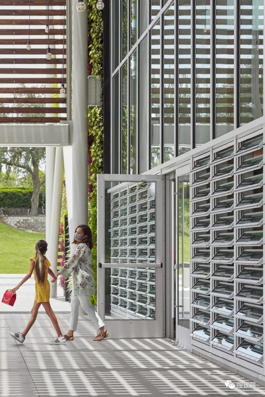 利用濕潤的亞熱帶氣候,建筑在65%的時(shí)間內都是自然通風(fēng)的。由室外濕度和溫度傳感器控制的Jalousie窗戶(hù)在需要空調時(shí)自動(dòng)關(guān)閉。