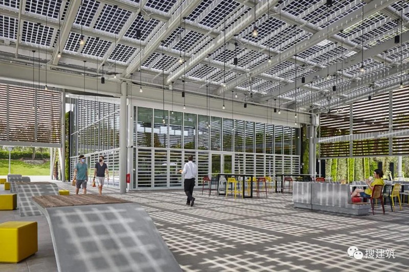 通過(guò)優(yōu)化建筑和廚房系統,降低了能源消耗?,F場(chǎng)發(fā)電策略:18,727平方英尺的光伏板,4,809平方英尺的玻璃集成光伏板,和25個(gè)離網(wǎng)停車(chē)場(chǎng)燈產(chǎn)生的能量比餐廳使用的還要多。