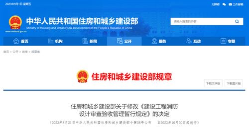 8月31日,住房和城鄉建設部發(fā)布關(guān)于修改《建設工程消防設計審查驗收管理暫行規定》的決定,自2023年10月30日起施行。
