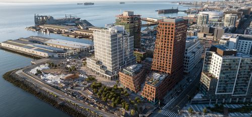 這個(gè)多功能項目于2023年6月落成,是總體規劃的一部分,旨在將舊金山海濱的一個(gè)停車(chē)場(chǎng)改造成一個(gè)充滿(mǎn)活力和可持續發(fā)展的社區,稱(chēng)為Mission Rock,為中等收入居民提供急需的住房選擇。