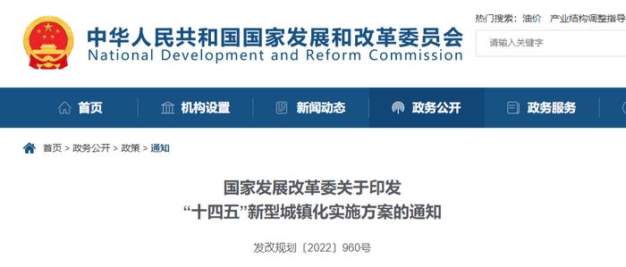 國家發(fā)改委印發(fā)《“十四五”新型城鎮化實(shí)施方案》,明確“十四五”時(shí)期推進(jìn)新型城鎮化的目標任務(wù)和政策舉措,推動(dòng)城鎮化質(zhì)量不斷提高。