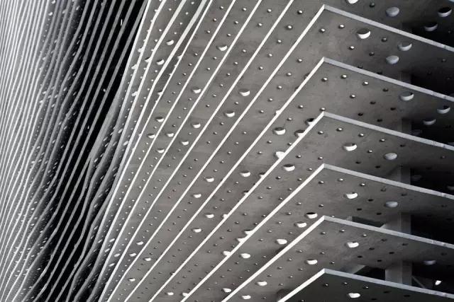 大樓的正立面由一排排自由流暢的混凝土板片構成,它仿佛一只只調皮的眼睛,向注目者眨眼示意。在夜景之下,它風(fēng)情更盛。這是否只是近來(lái)流行的立面包裝迷魂計?