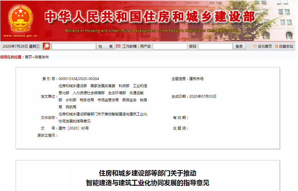 近日,住建部、國家發(fā)改委等13部門(mén)聯(lián)合下發(fā)《關(guān)于推動(dòng)智能建造與建筑工業(yè)化協(xié)同發(fā)展的指導意見(jiàn)》