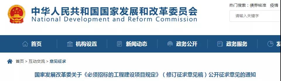 《必須招標的工程建設項目規定》調整,國家發(fā)改委發(fā)布征求意見(jiàn)稿