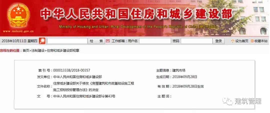 住建部修改招投標管理辦法,取消合同備案和招標金額限制